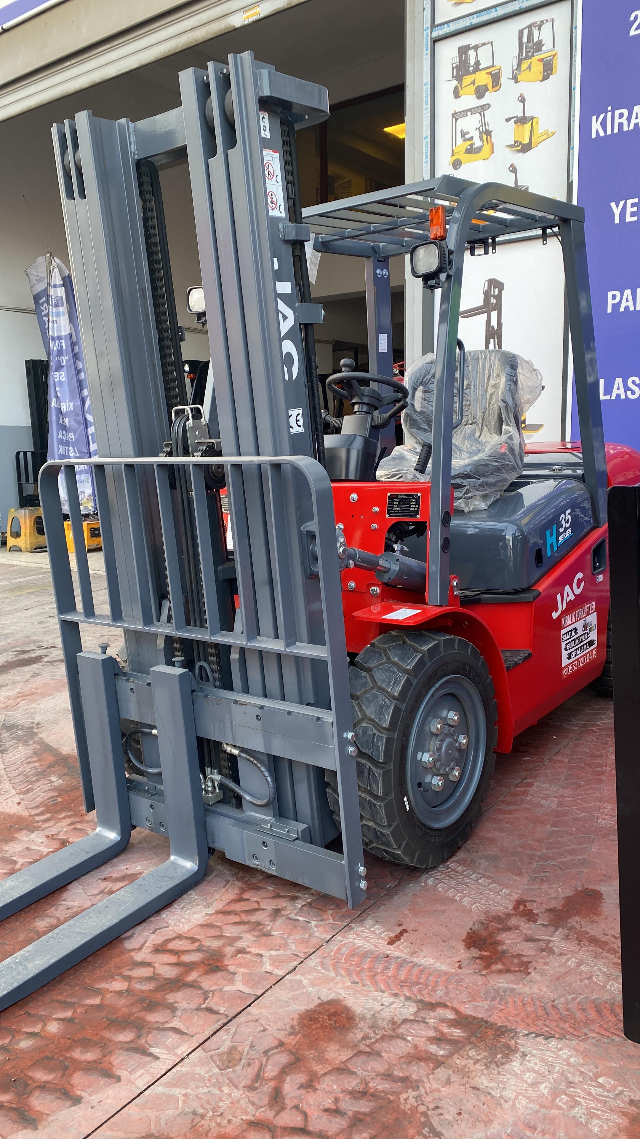 Kurtköy Forklift Kiralama olarak, ağır yük taşıma operasyonlarınızda maksimum verimlilik ve performans sağlayan Jac marka 3.5 ton dizel forklift modellerimizle hizmetinizdeyiz.